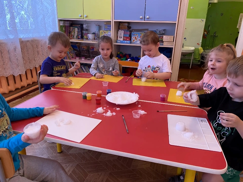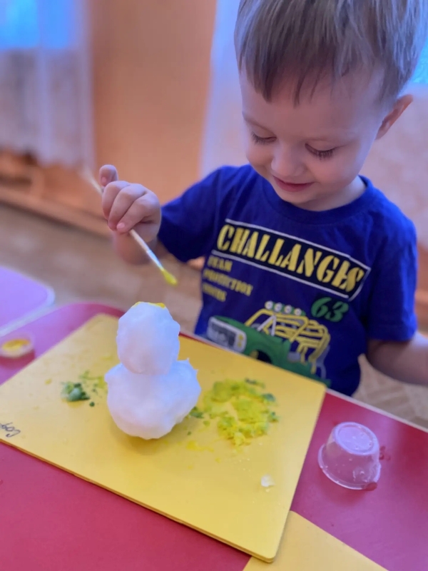 А вот и самое интересное! Мы провели увлекательные опыты с водой и снегом, а затем превратили обычный лед в радужное чудо. С помощью кисточек и красок мы раскрашивали наши ледяные фигурки, создавая волшебные, переливающиеся на свету льдинки.